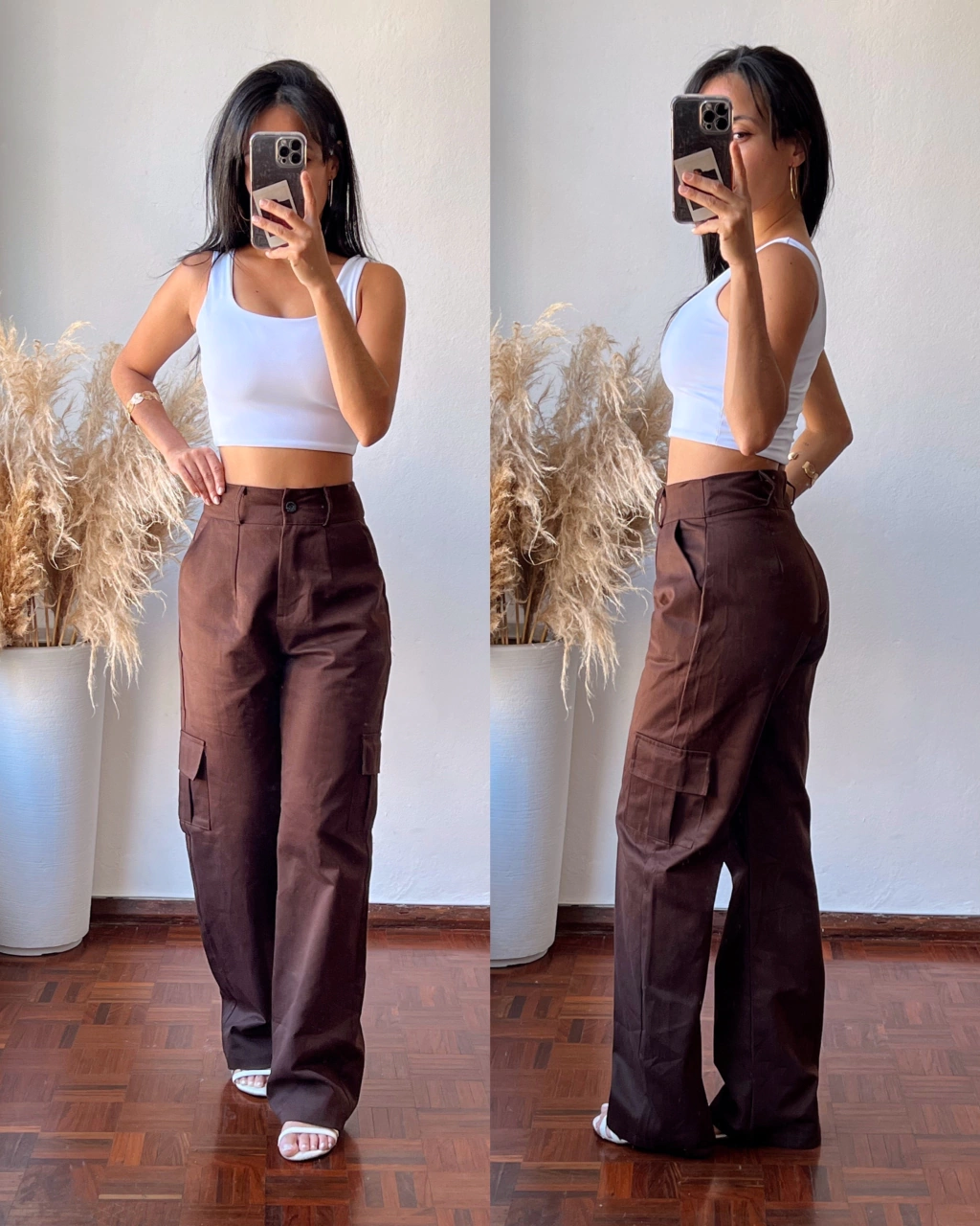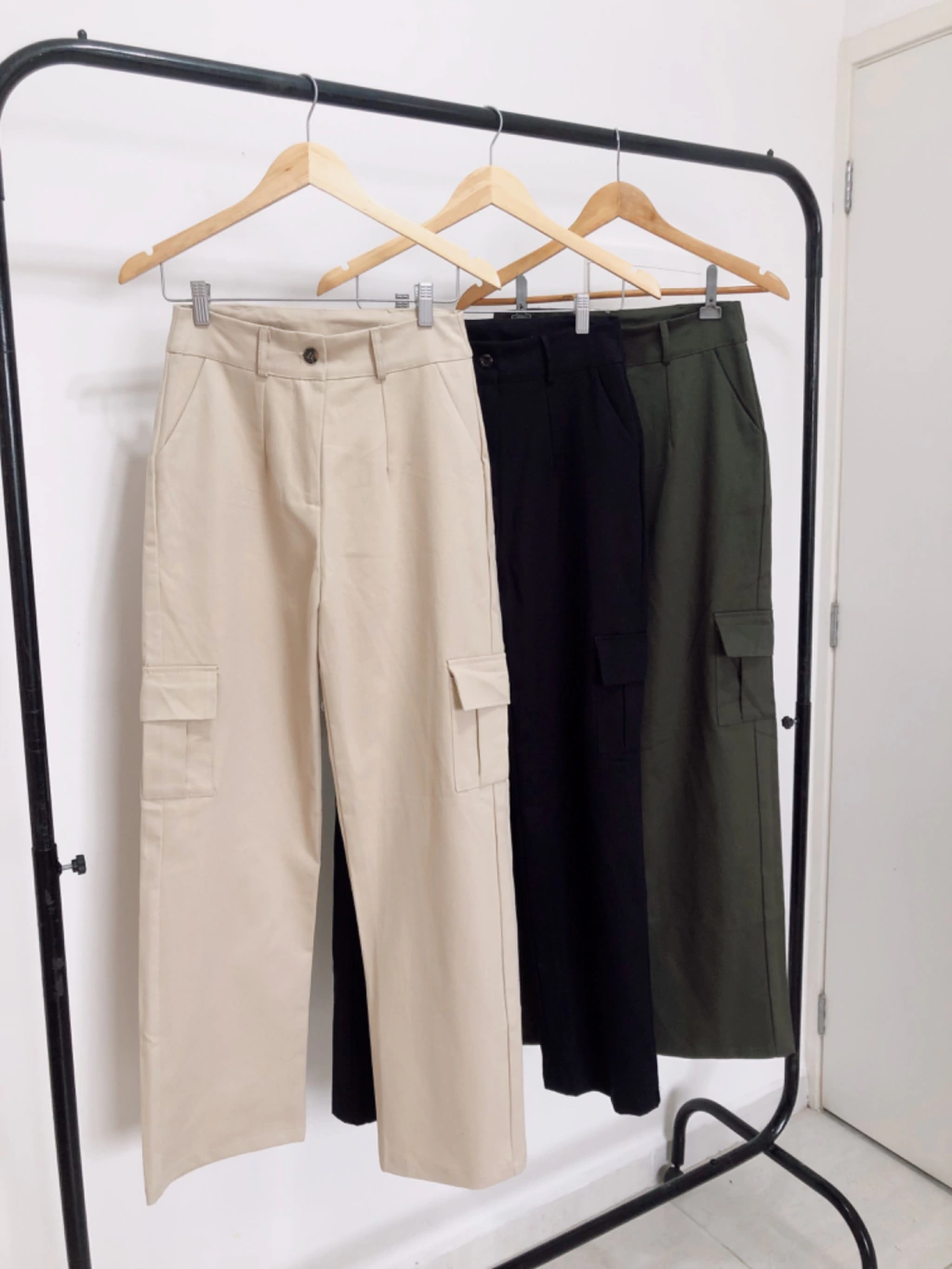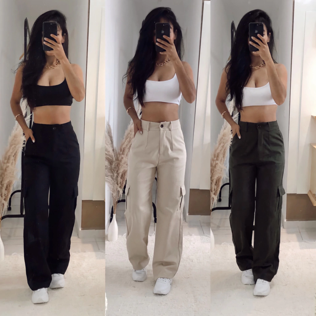 R: O Calça Bele Cargo está disponível nas cores preto, bege, verde militar , branco e marrom