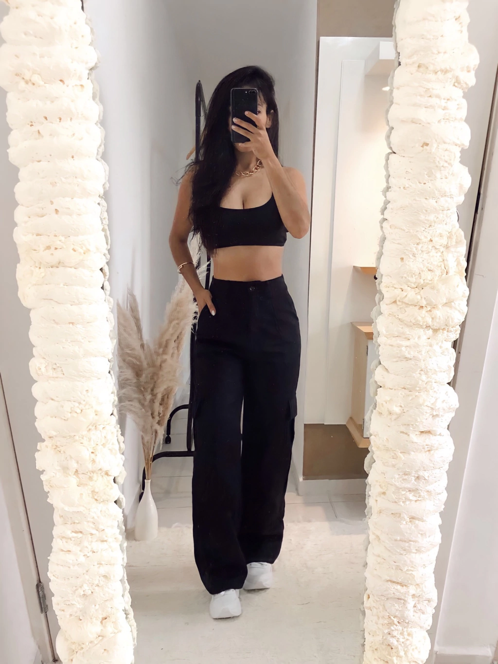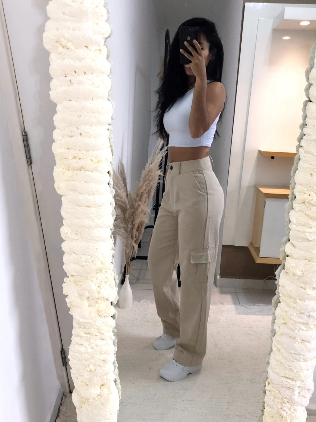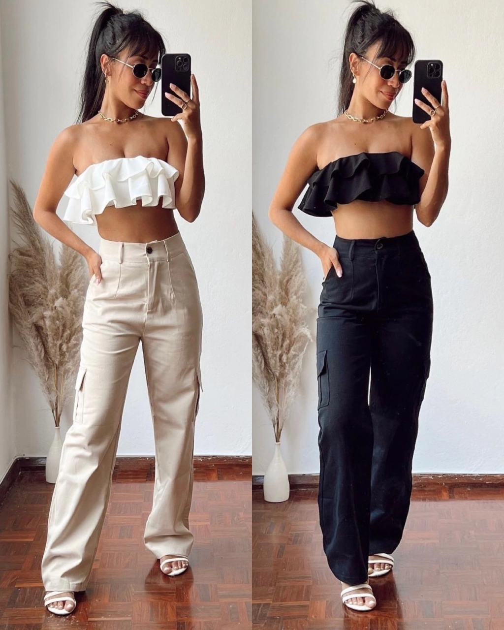 R: O Calça Bele Cargo está disponível nas cores preto, bege, verde militar , branco e marrom
