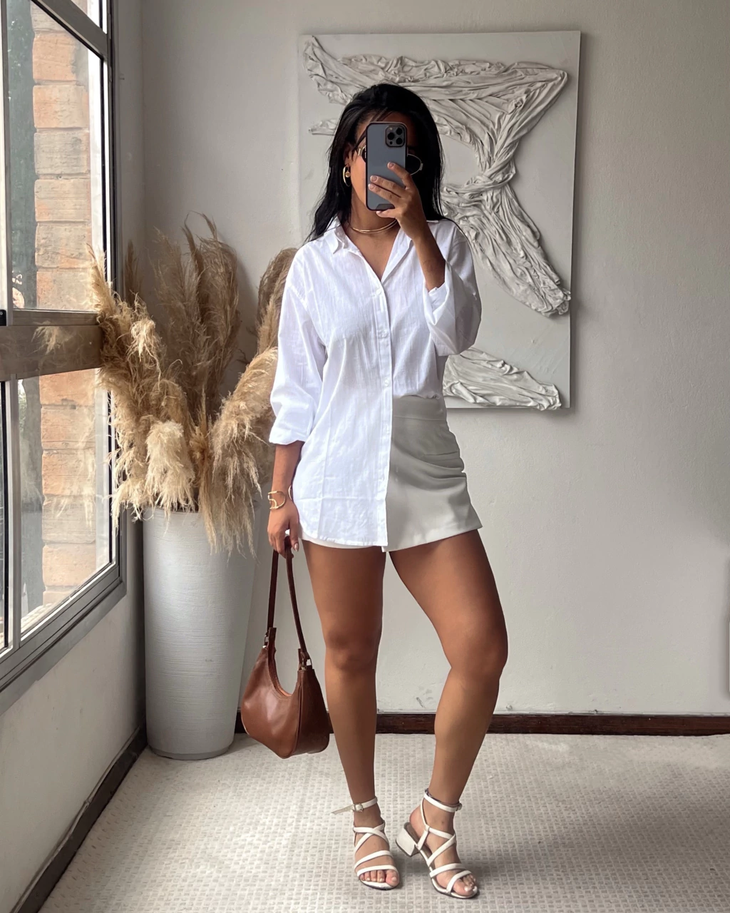 Feito em tecido de algodao, leve e com ótimo caimento, é perfeito para compor look para o trabalho, passeios à beira-mar, almoços ao ar livre, compor look como terceira peça até na praia. Combine com sandálias, rasteirinhas, shorts, calca jeans ou alfaiataria